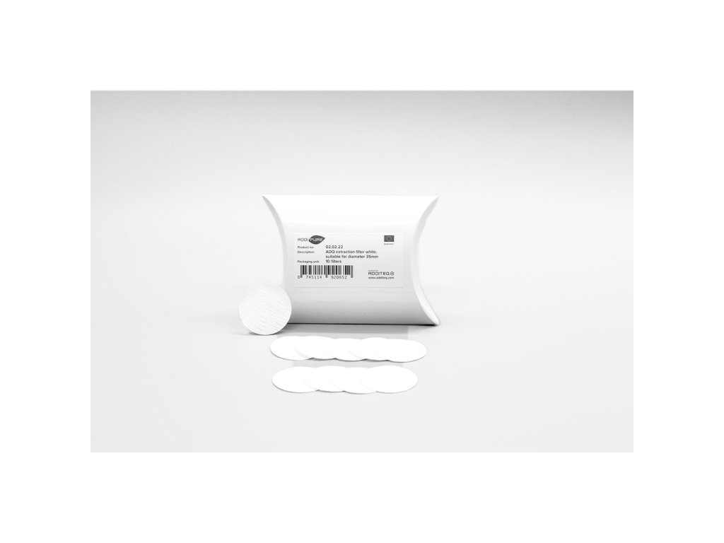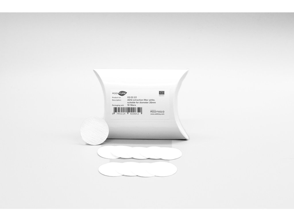 Balenie obsahuje 10 patentovaných extrakčných filtrov ADQ určených pre 10 kusov patentovaných extrakčných filtrov ADQ, ktoré sú určené pre extraktory AddiPure s priemerom 35 mm (napríklad pre model P-60/35).