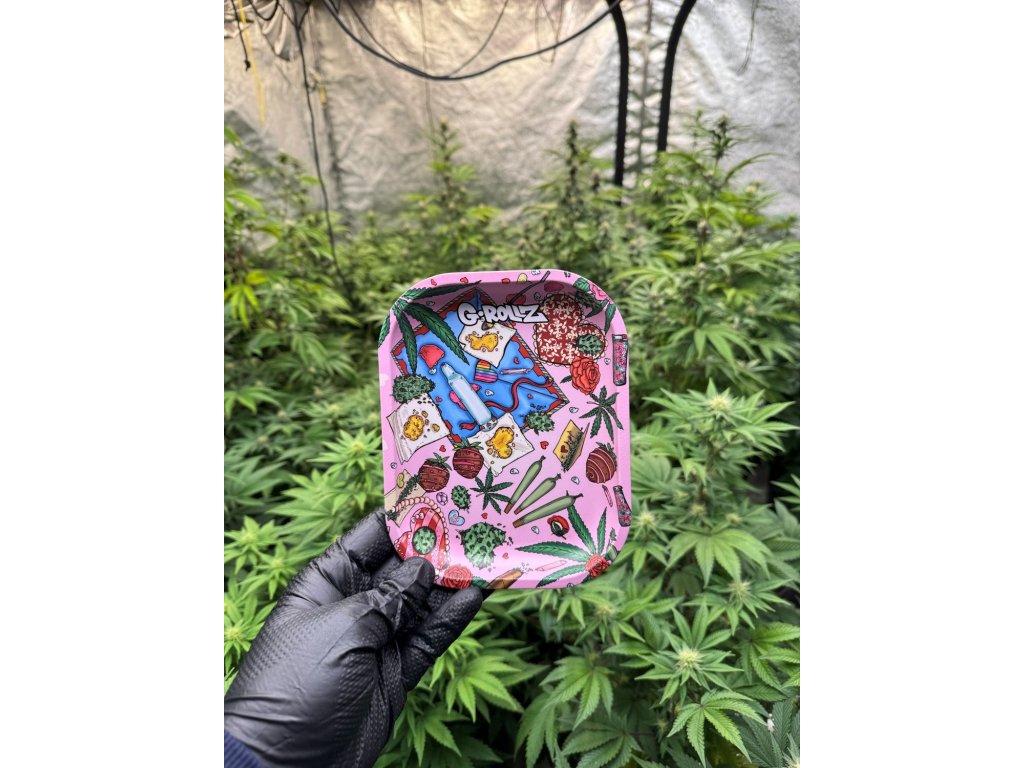 Kvalitná baliaca podložka alebo podklad od značky G-Rollz. Kovový podklad má rozmery 18 x 14 cm a je potlačený rôznymi fajčiarskymi pomôckami, kvetmi marihuany a tiež zamilovanými motívmi ako je srdce, ruža či jahody.