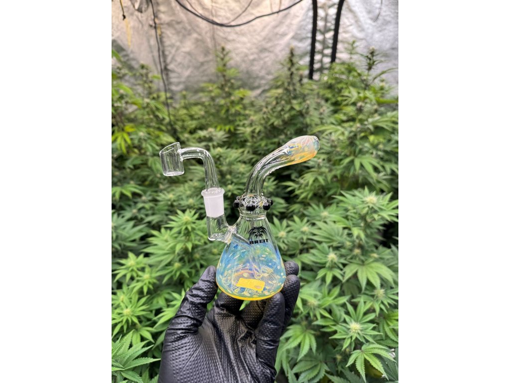 Sklenený mini bong od značky Breit vysoký 15 cm a kotlom na konopné extrakty o hr. 14,5 mm.