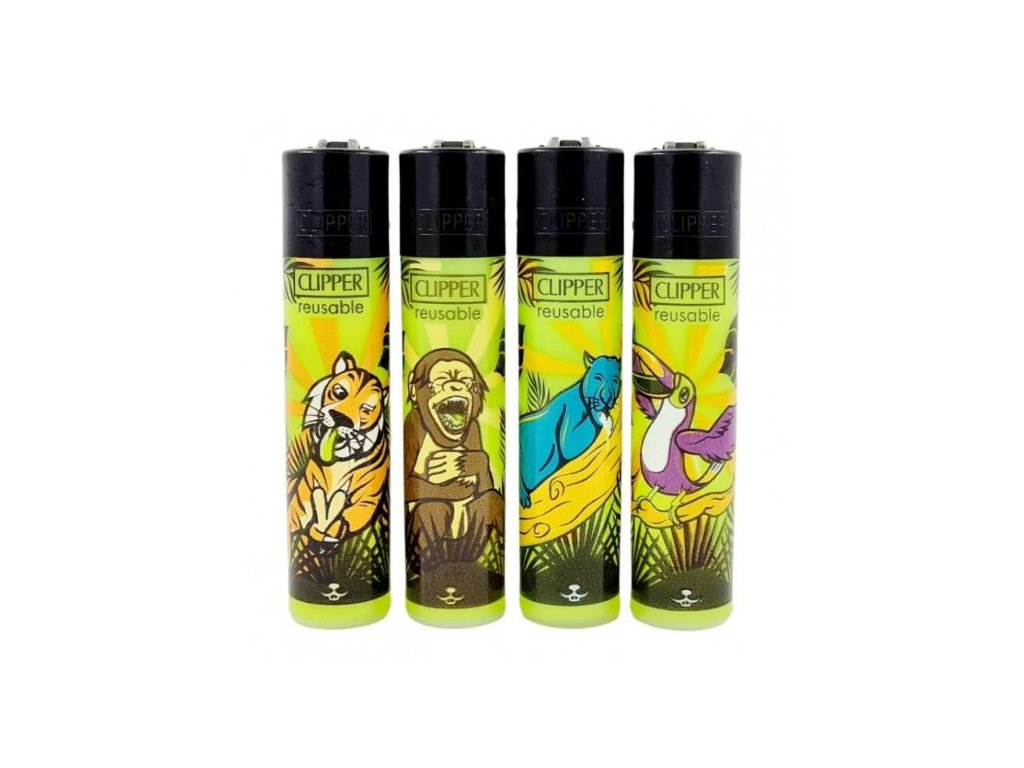 Zapaľovače Clipper zo zberateľskej kolekcie s názvom Wild Clan 1. Zapaľovače sú potlačené obrázkami veselých zvierat z divokej prírody v 4 rôznych prevedeniach.