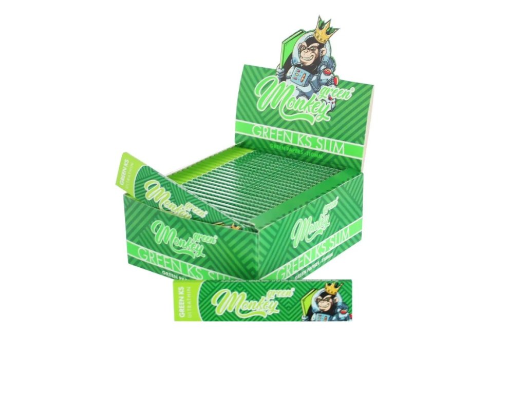 Cigaretové papieriky v zelenej farbe a vo veľkosti King Size Slim od značky Monkey King.