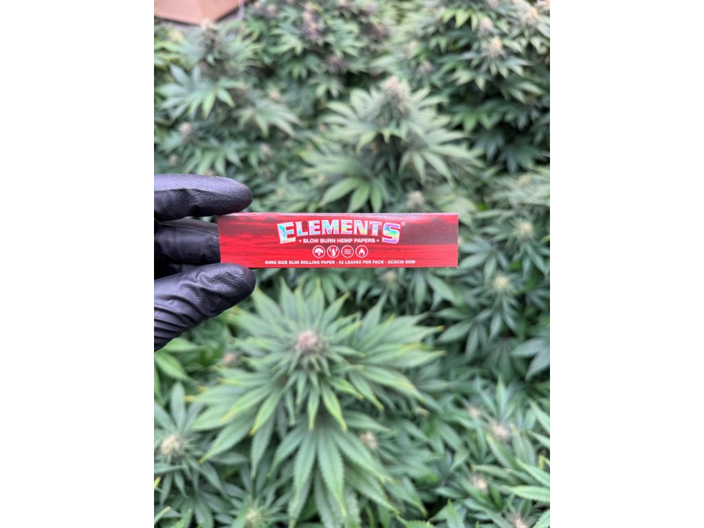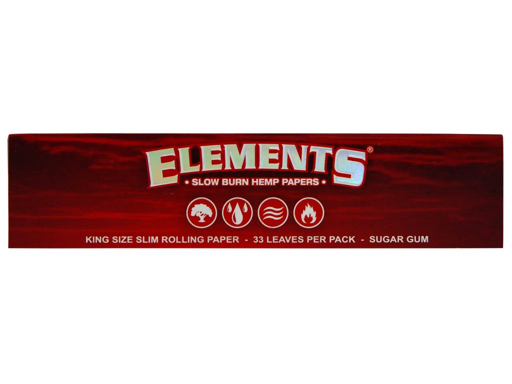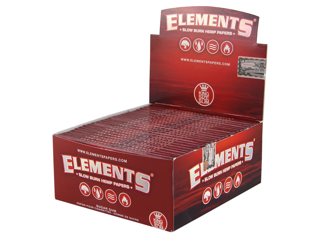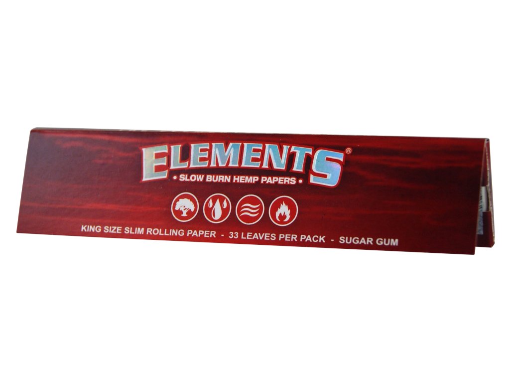 Spoločnosť Elements sa medzi užívateľmi kanabisu preslávila hlavne svojimi kvalitnými a extra tenkými ryžovými papieriky. Keďže patrí medzi veľmi obľúbené papieriky, nie je divu, že sa rozhodli vstúpiť na trh aj s variantom vyrobenú z technického konope. Elements Red sú rovnako ako klasické Elements či RAW extra tenké a obsahujú vodoznak, vďaka ktorému veľmi pomaly a rovnomerne horí.