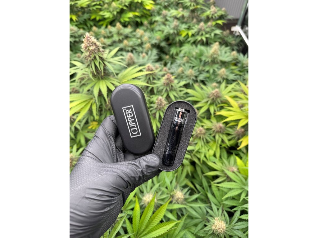 Puzdro je v čiernej a zapaľovač tiež v čiernej luxusnej farbe s motívom marihuany a pohodlne sa zmestí do vrecka alebo malej príručnej tašky. Kovová krabička aj zapaľovač sú označené klasickým logom Clipper. Zapaľovač je v Classic prevedení, je teda trochu väčší ako Clipper Micro. Okrem klasických Micro Clipper zapaľovačov, rovnako ako všetky ostatné výrobky Clipper, je aj tento vyrobený z kvalitného nylonu, vďaka čomu vydrží nejeden pád.