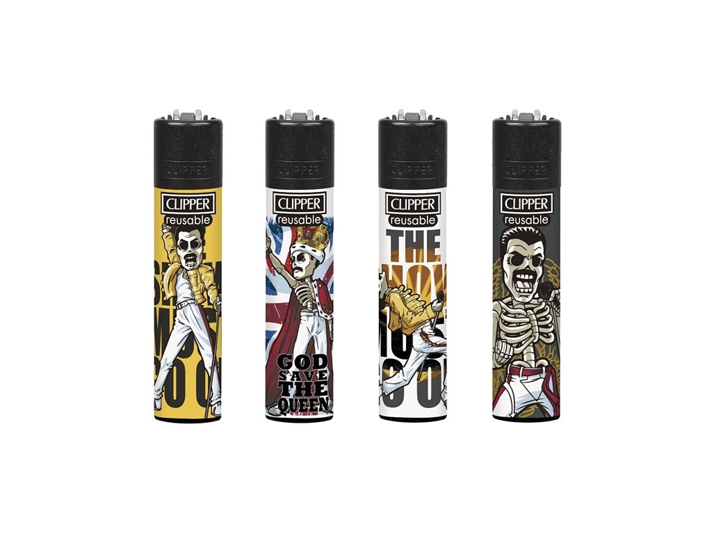 Zapaľovače Clipper zo zberateľskej kolekcie s názvom The Best. Zapaľovače sú potlačené 4 rôznymi motívmi súvisiace s hudobníkom Freddiem Mercurym.