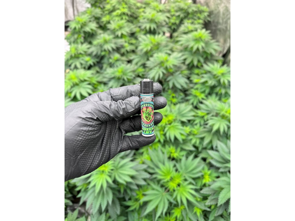 Zapaľovače Clipper z edície s názvom Weed Bilboard s motívom konope v 4 variantoch.