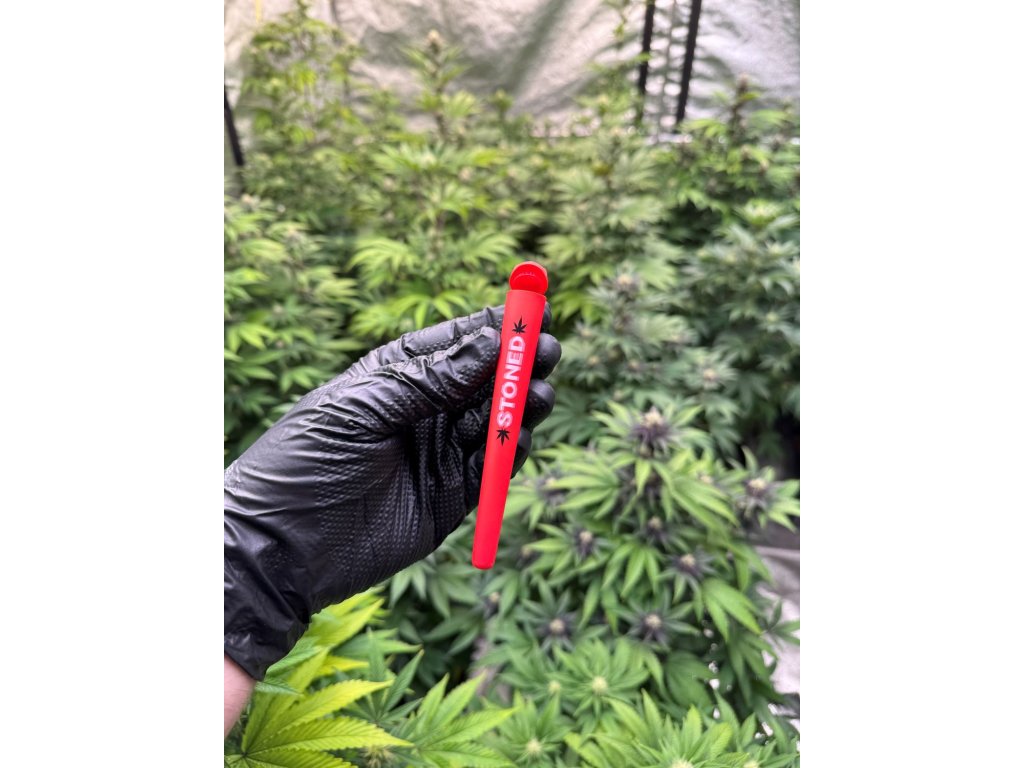 Schovka na joint vyrobená z kvalitného tvrdeného plastu, ktorá neprepúšťa pachy z puzdra von. Má červenú farbu a nájdete na nej motívy malých zelených listov od konope a nápis Stoned alebo tzv. fakáče. Tematická schovka na skladovanie vašej cigarety plnenej rastlinným materiálom.