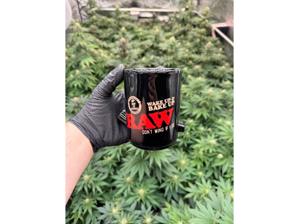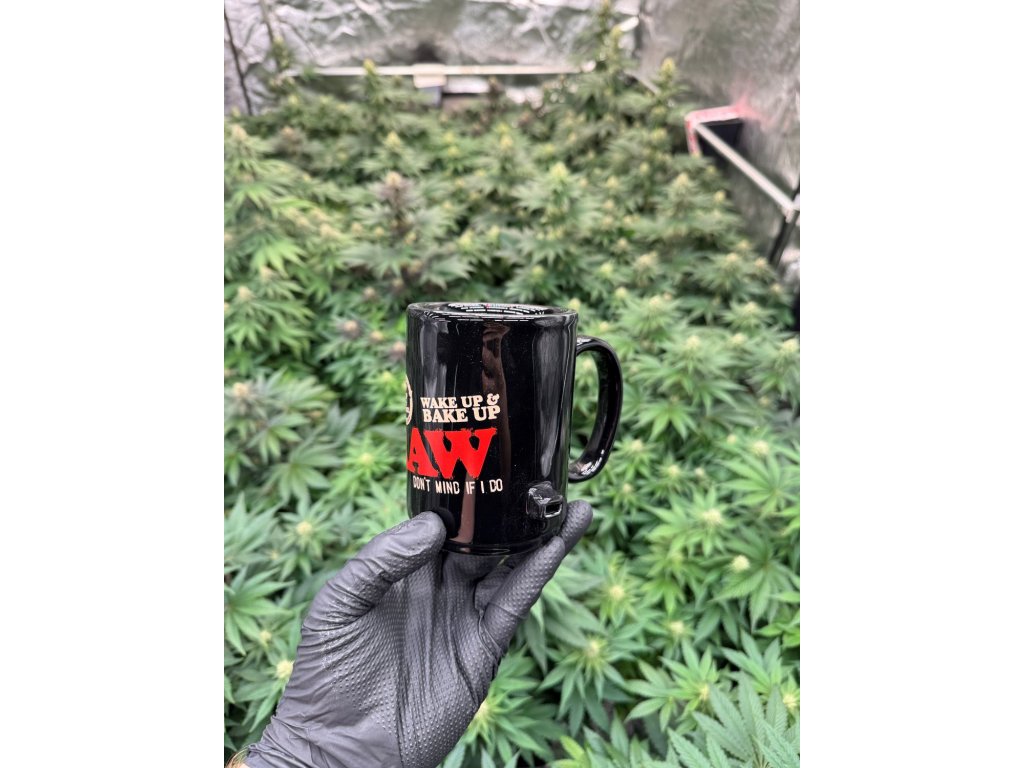 Keramický hrnček značky RAW Wake and Bake . Hrnček je čiernej farby a vhodný na teplé aj studené nápoje. Tento špeciálny hrnček RAW má dvojitú stenu a dva otvory, cez ktoré je možné fajčiť jointa zatiaľ čo máte kávu v hrnčeku. Vďaka špeciálnej stene dym neprechádza tekutinou vo vnútri a tak sa nemusíte báť o znehodnotení fajčením, ako by tomu bolo pri sklenenom bongu .