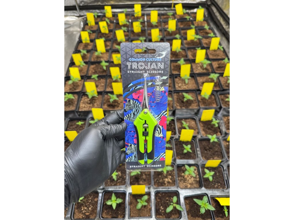 Nožnice Trojan sú vysokokvalitné kovovo-plastové nožnice s kvalitnou a veľmi ostrou čepeľou. Tieto záhradnícke nožnice sú skvelým nástrojom na zber alebo strihanie konope, no dobre poslúžia aj pri konečnej úprave konopných paličiek a kvetov. Majú veľmi kvalitnú čepeľ, sú doplnené poistkou proti otvoreniu a pružinou na spätné roztvorenie. V našom online growshope nájdete aj verziu so zahnutou čepeľou, ktorá umožňuje ešte jednoduchšie strihanie okvetných lístkov okolo kvetov.