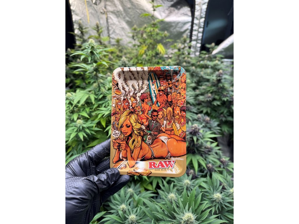 Už tretia novinka v poradí medzi baliacimi podkladmi značky RAW s letnými motívmi inšpirovanými plážovým životom. Na baliacom podklade je zobrazená pláž plná ľudí v rôznych situáciách, ktorí si užívajú letné počasie v USA. Podložka je vhodná ako pomôcka na balenie legálnych jointov, CBD konope alebo iných rastlinných materiálov, ktoré by mohli pri balení narobiť neporiadok. Podklad je vyrobený z kovu a okrem obrázka ho zdobí aj logo značky RAW.