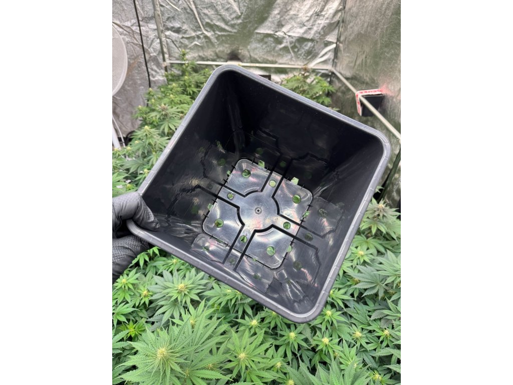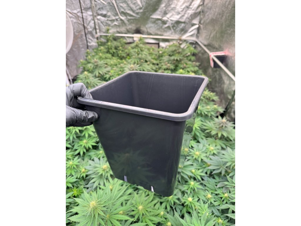 Plastový kvetináč máme na sklade v čiernej farbe. Dno kvetináča má odtokové otvory na odvádzanie prebytočnej vlhkosti, čo zabraňuje vzniku plesní a zlepšuje vysychanie substrátu. Veľkosť a rozmery kvetináča sú 25 x 25 x 26 cm s objemom 11 litra. Kvetináč s takýmto objemom je vhodný pre veľké rastliny, ktoré žijú 3-6 mesiacov, alebo pre automatické odrody konope, ktoré v tejto veľkosti prežijú celý svoj cyklus. Objem je tiež najobľúbenejší u pestovateľov v interiéri, ktorým zvyčajne postačí na všetky životné štádiá svojich rastlín konope. Ku kvetináču radíme dokúpiť štvorcovú podmisku s rozmerom aspoň 28 x 28 cm.
