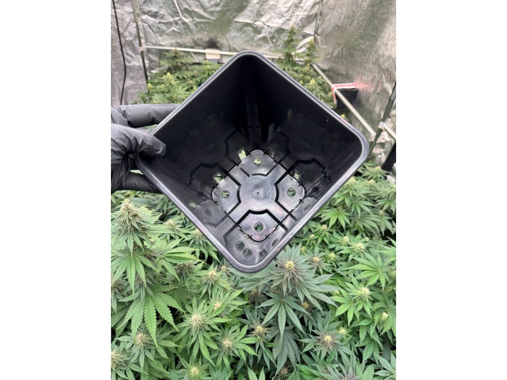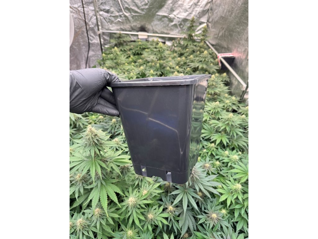 Plastový kvetináč máme na sklade v čiernej farbe. Dno kvetináča má odtokové otvory na odvádzanie prebytočnej vlhkosti, čo zabraňuje vzniku plesní a zlepšuje vysychanie substrátu. Veľkosť a rozmery kvetináča sú 20 x 20 x 23 cm s objemom 6,5 litra. Kvetináč s takýmto objemom je vhodný pre malé až stredne veľké rastliny, ktoré žijú + - 3 mesiace, alebo pre rastliny marihuany, ktoré budete čoskoro presadzovať, pretože konopné korene za niekoľko mesiacov prerastú túto veľkosť. Tento objem je preto najobľúbenejší u všetkých pestovateľov, ktorí plánujú svoje rastliny konope presádzať. Táto stredná veľkosť kvetináča je obzvlášť vhodná na vytvorenie dobrého koreňového systému, ktorý potom môžete presadiť napríklad do 11 L nádoby. V tejto veľkosti môžete rastliny pestovať aj do konca ich cyklu, ale musíte počítať s tým, že budú veľmi malé. Ku kvetináču radíme dokúpiť štvorcovú podmisku s rozmerom aspoň 20 x 20 cm.