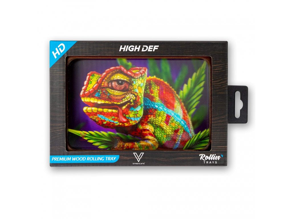 Kvalitný sklenený podklad na balenie bylinných cigariet značky V-syndicate z USA. Baliaca podložka je vyrobená z borosilikátového tvrdeného skla a je kvalitne potlačená obrázkom veľmi pestrého chameleóna. Podklad je doplnený o luxusný drevený rámček, ktorý robí tento podklad skutočne originálnym. Názov obrázku je Stoned Chameleon a tak je možné, že je toto zviera pod vplyvom nelegálneho konope. Luxusný darček pre každého fajčiara.