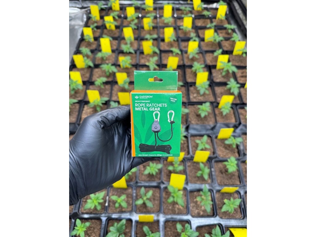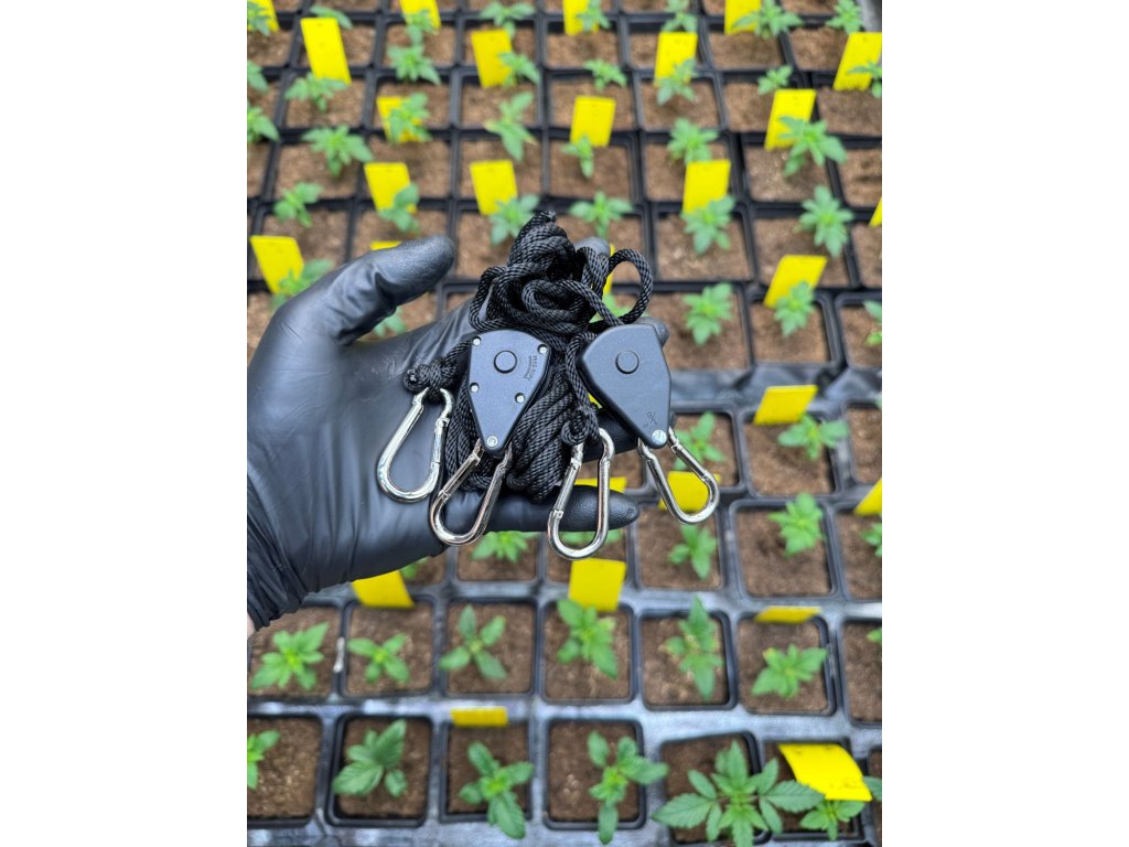 Závesný systém Rope Ratchet, známy tiež ako Easy Rolls, slúži na zavesenie pestovateľského vybavenia, ako sú svetlá, pestovateľské filtre, výfuky alebo ventilátory. Nosnosť úchytov je veľmi vysoká, až 130 kg.