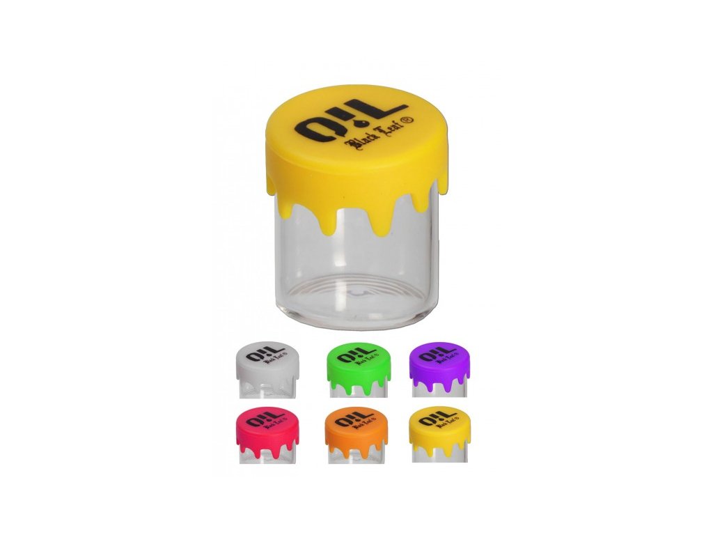Sklenená schovka so silikónovým viečkom a objemom 7 ml na skladovanie rastlinných extraktov.