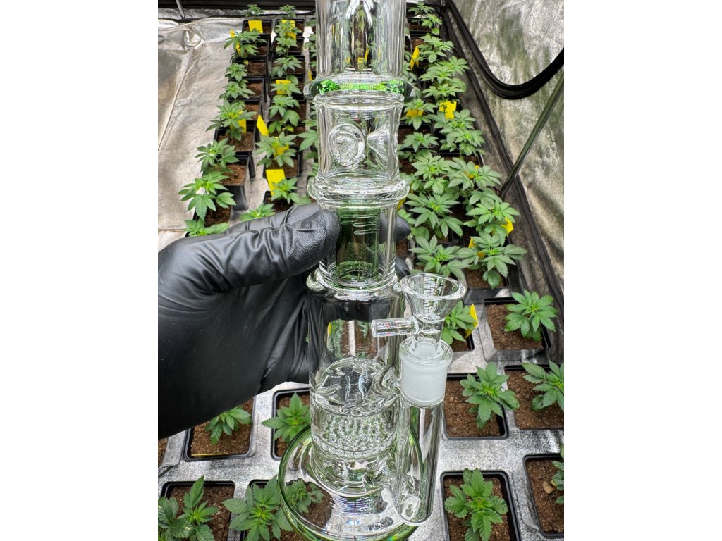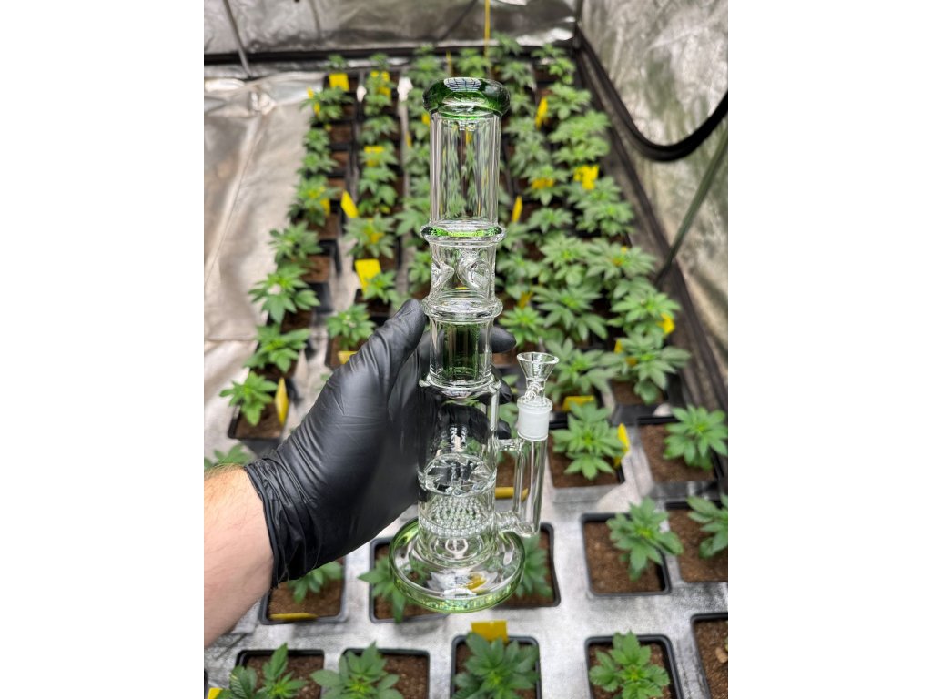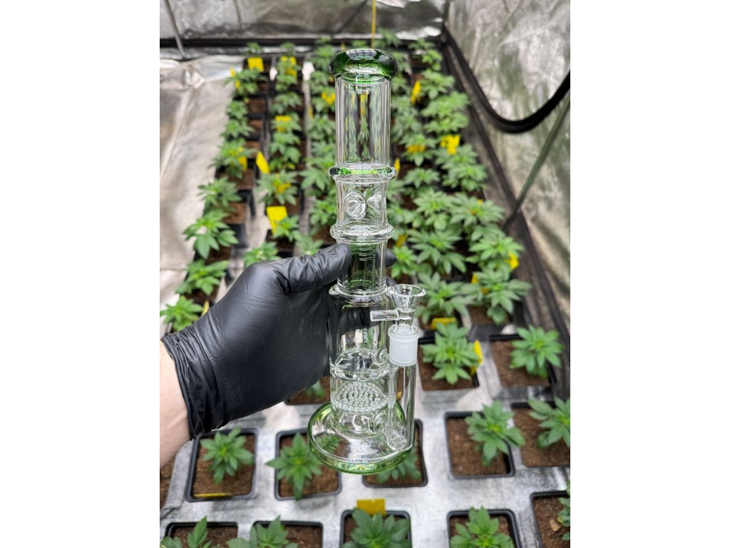 Sklenený ice-bong s tromi rôznymi perkoláciami. V tomto sklenenom bongu nájdete hneď tri perkolácie, ktoré Vám zjemnia hutný a škrabavý dym.