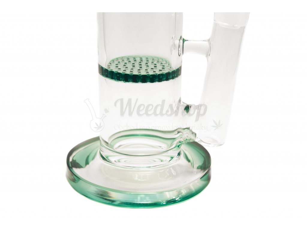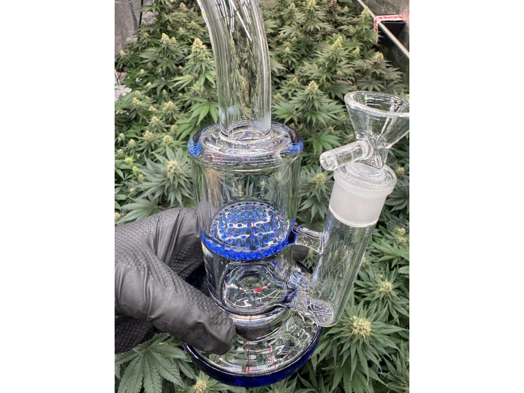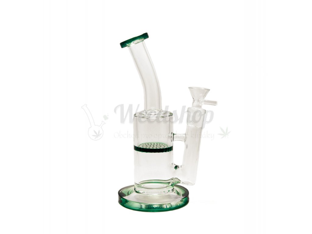 Sklenený bong s honeycomb perkoláciou vo vnútri v rôznych farbách. Bong vysoký 21 cm z kvalitného borosilikátového skla.