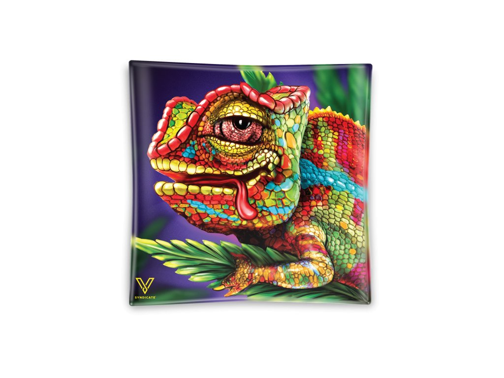 kvalitné sklenený popolník od značky V-syndicate z USA. Popolník je vyrobený z borosilikátového tvrdeného skla a je kvalitne potlačený. Popolník je ergonomicky vytvarovaný, aby popol nevypadával von z podložky. Tento popolník Chameleon je veľmi kvalitný a pôsobí veľmi luxusným dojmom. Veľmi podarený darček pre milovníka marihuany.