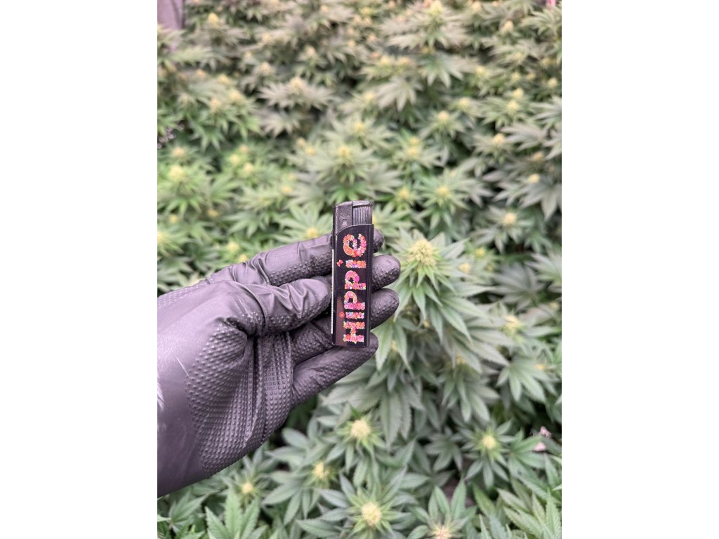 Spotrebná znova plniteľný zapaľovač s rôznymi motívmi pripomínajúce konope a obdobie hippies.