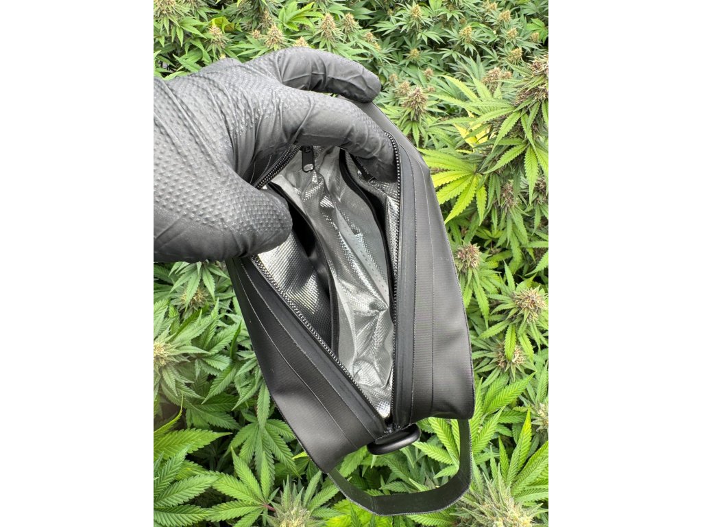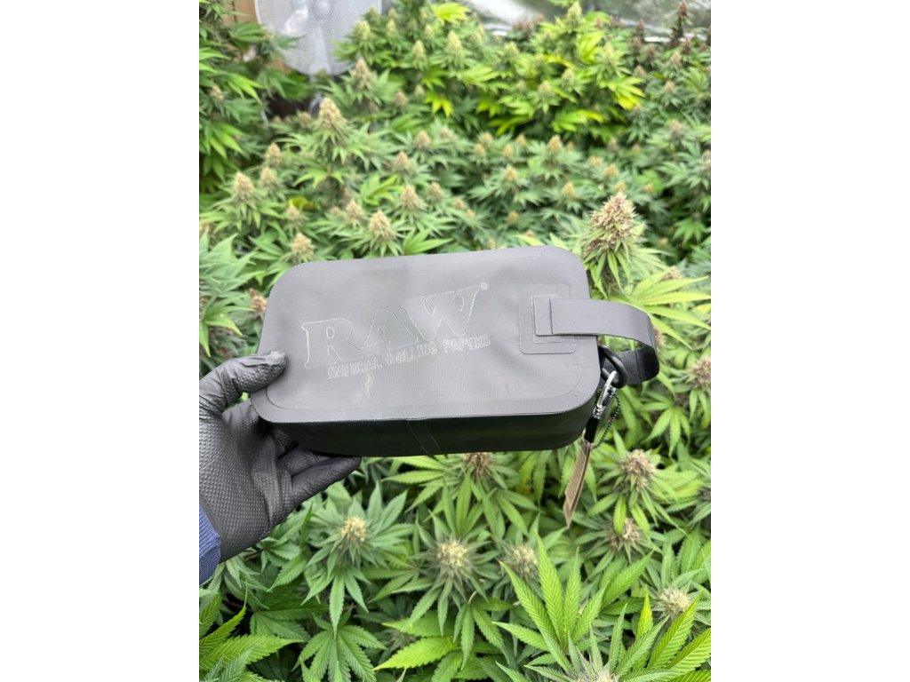 Prenosné púzdro na tabak či konope zo spoločnosti RAW s názvom Dopp Kit. Protizápachová taška je opatrená dvojitým zipsom a vyberateľným puzdrom, ktoré je pokryté hliníkovou vrstvou a je možné ho samostatne uzavrieť ďalším zipsom. Veľká taška ktorú je možné navyše uzamknúť zámkom a je vodeodolná.